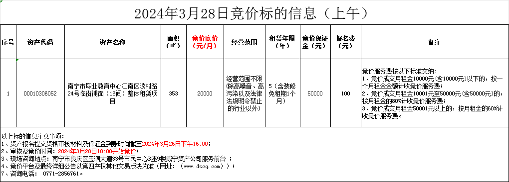 2024年3月28日競(jìng)價(jià)標(biāo)的信息(線上競(jìng)價(jià))