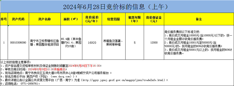 2024年6月28日競價標的信息(線上競價)