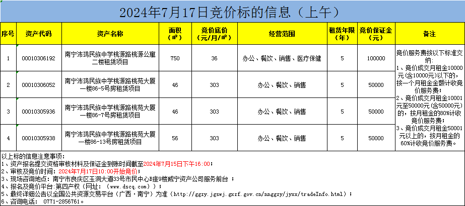 2024年7月17日競(jìng)價(jià)標(biāo)的信息(線上競(jìng)價(jià))