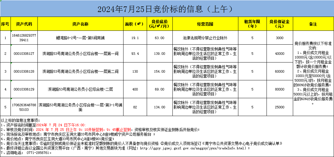 2024年7月25日競(jìng)價(jià)標(biāo)的信息(現(xiàn)場(chǎng)競(jìng)價(jià))