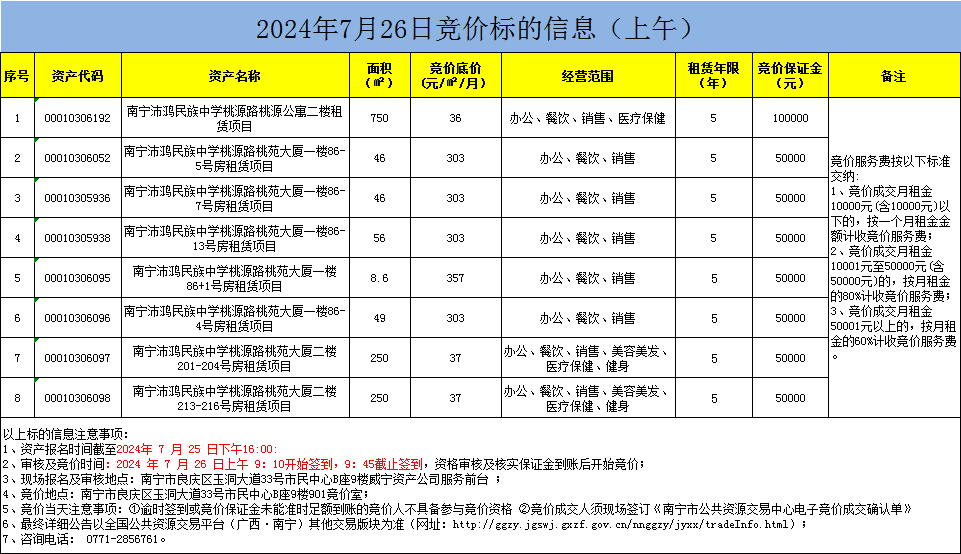 2024年7月26日競價標(biāo)的信息(現(xiàn)場競價)