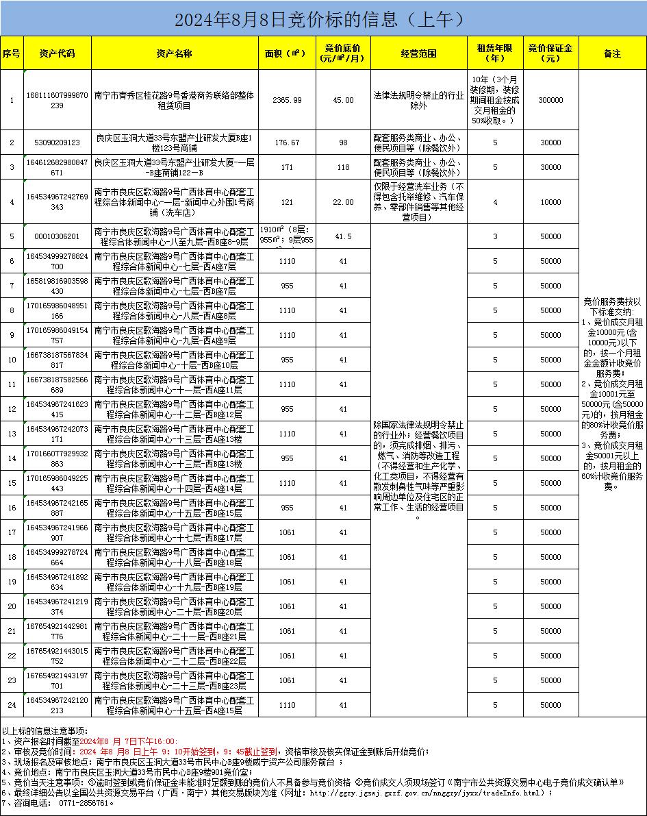 2024年8月8日競(jìng)價(jià)標(biāo)的信息(現(xiàn)場(chǎng)競(jìng)價(jià))