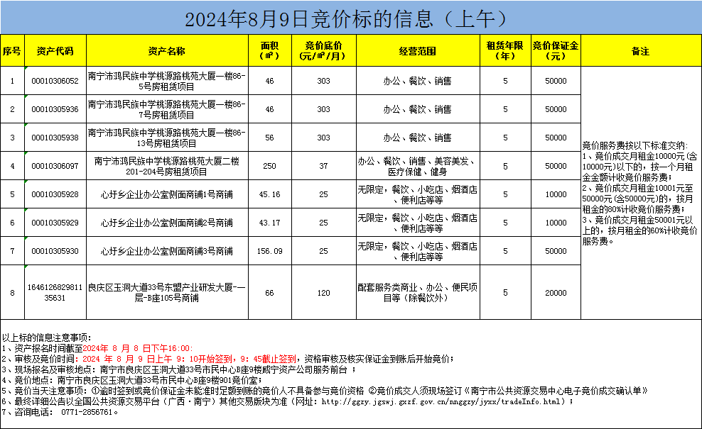 2024年8月9日競(jìng)價(jià)標(biāo)的信息(現(xiàn)場(chǎng)競(jìng)價(jià))
