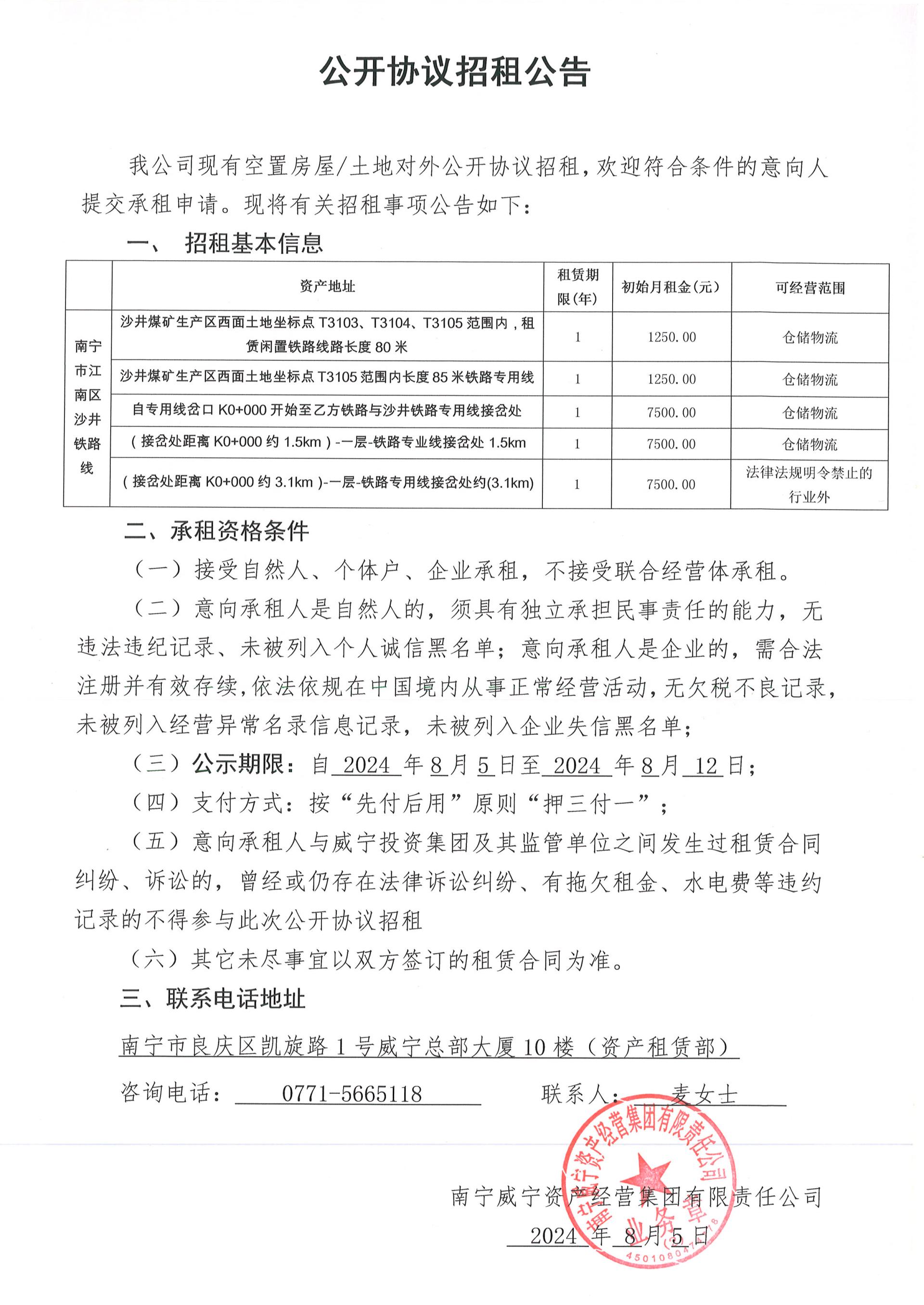 南寧市江南區(qū)沙井鐵路線等資產公開協(xié)議招租