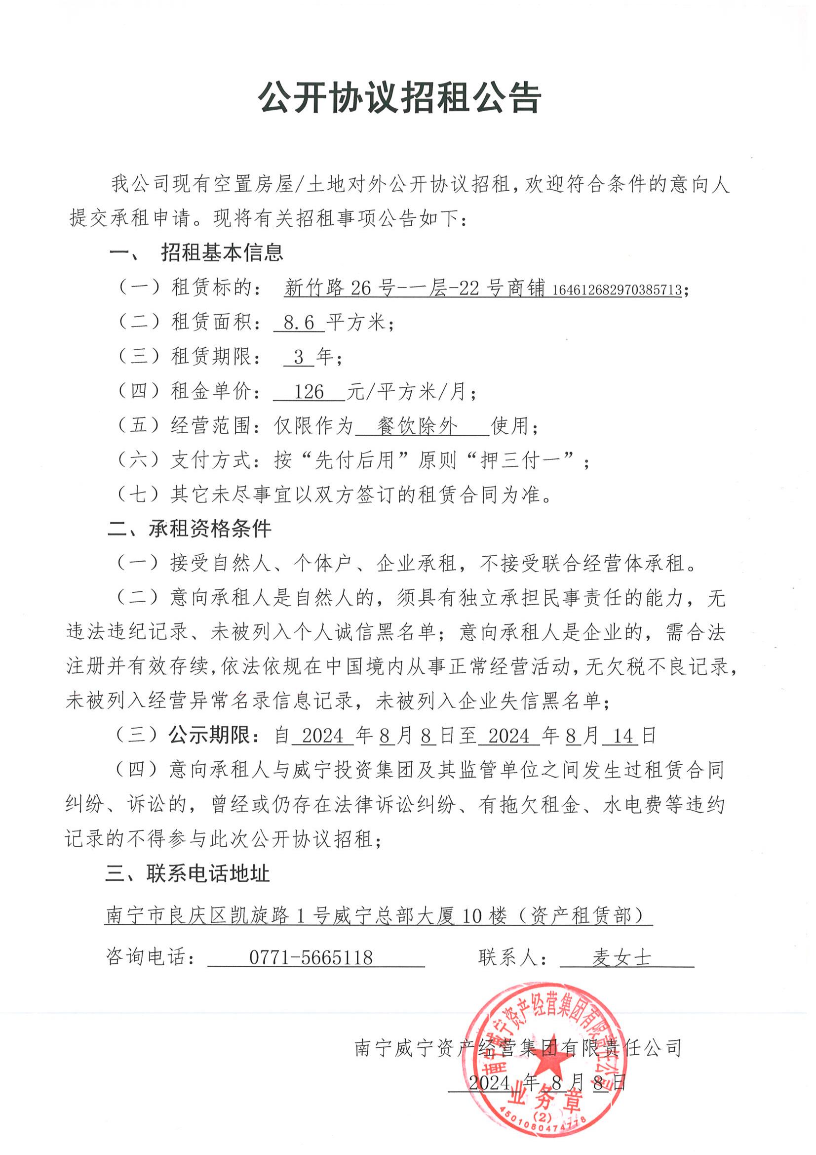 新竹路26-22號商鋪及園湖南路11號1層6號鋪公開協(xié)議招租公告
