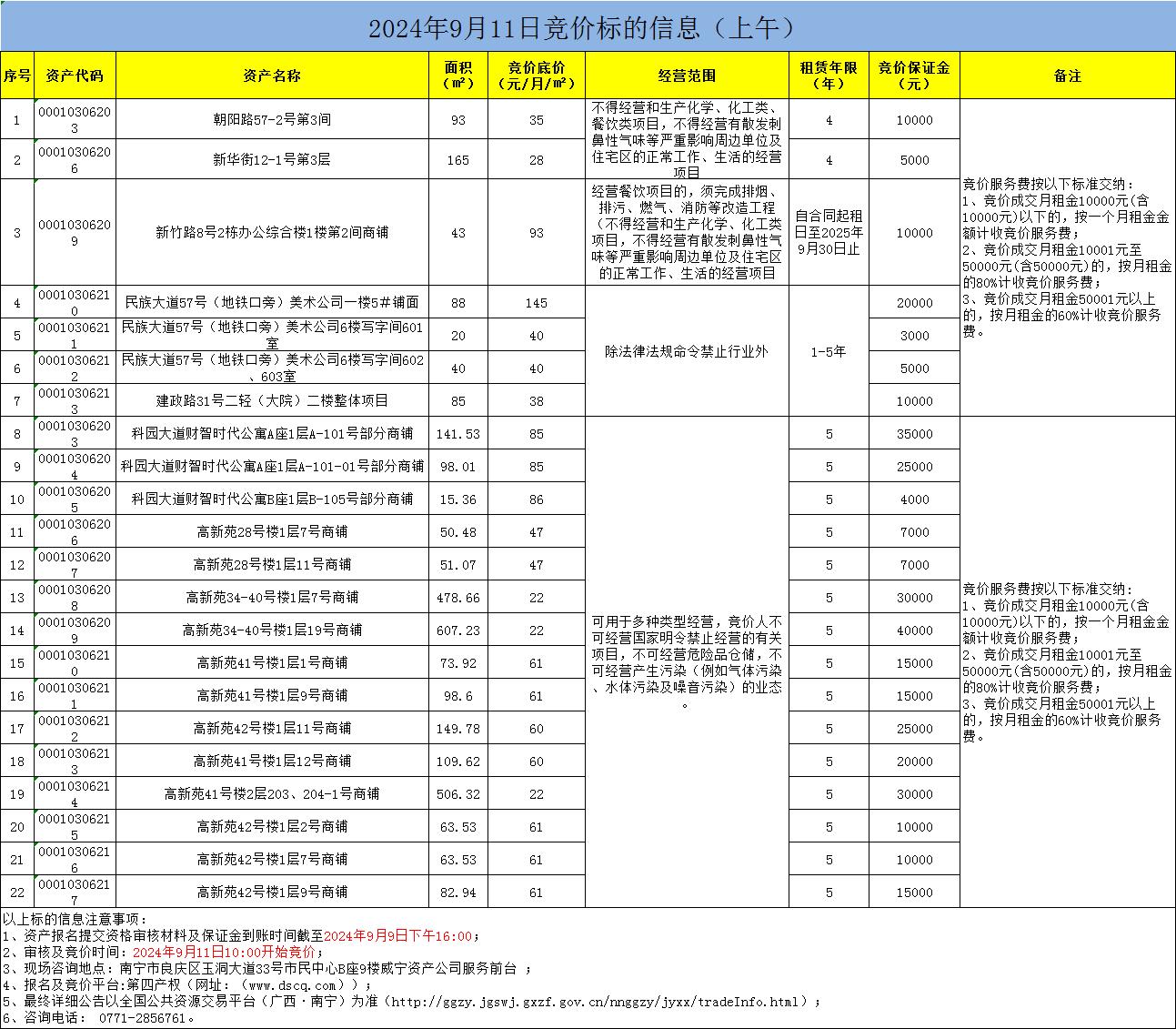 2024年9月11日競價標(biāo)的信息(線上競價)