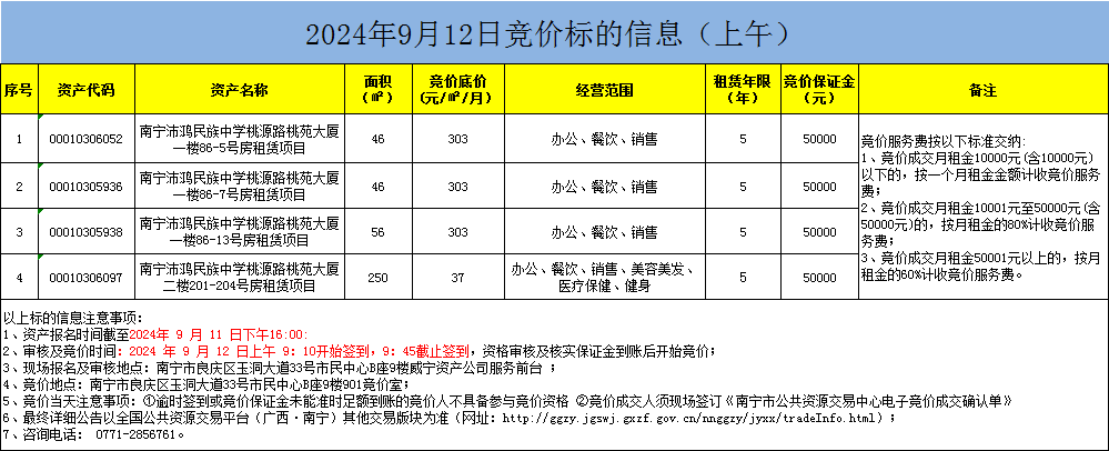 2024年9月12日競(jìng)價(jià)標(biāo)的信息(現(xiàn)場(chǎng)競(jìng)價(jià))