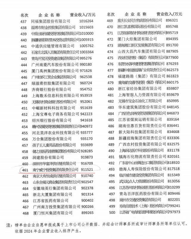 近日,中國企業(yè)聯(lián)合會、中國企業(yè)家協(xié)會發(fā)布了“2025中國服務(wù)業(yè)企業(yè)500強”榜單,南寧威寧集團再度榮登該榜單,位列第461位,較上一年排名上升16位,成為唯一一家連續(xù)十年上榜中國服務(wù)業(yè)企業(yè)500強的南寧市屬國有企業(yè),充分彰顯了集團持續(xù)穩(wěn)健的發(fā)展實力與區(qū)域服務(wù)業(yè)中的領(lǐng)先地位。“中國服務(wù)業(yè)企業(yè)500強”榜單由中國企業(yè)聯(lián)合會、中國企業(yè)家協(xié)會在“中國企業(yè)500強”基礎(chǔ)上,參照國際通行評價體系,已連續(xù)20年向社會公開發(fā)布,是衡...