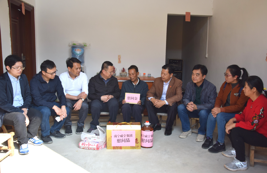 2020年1月10日,南寧威寧集團(tuán)黨委副書記、馬超毅帶隊(duì)來到上林縣西燕鎮(zhèn)云靈村,看望慰問了韋展忠等5戶黨員群眾,為他們送上新春的祝福與組織的關(guān)懷。