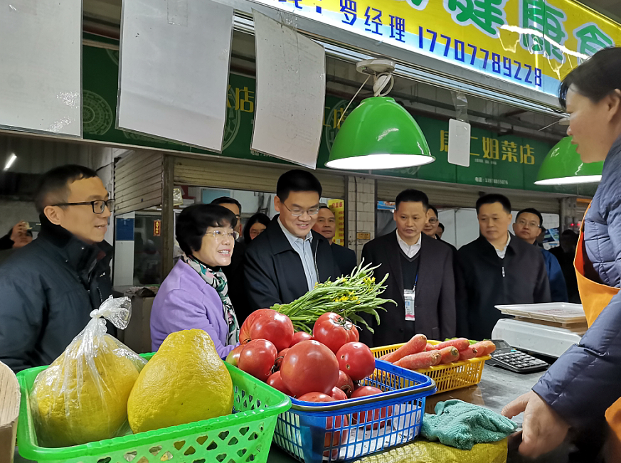 自治區(qū)、南寧市領(lǐng)導(dǎo)到飛鳳市場開展春節(jié)前商品供應(yīng)和食品安全情況調(diào)研