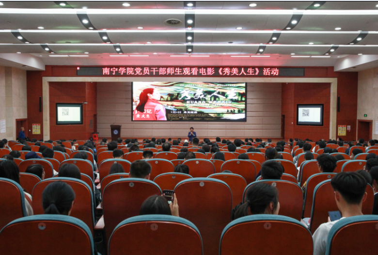 11月9日晚,南寧學(xué)院組織開展《秀美人生》觀影活動,學(xué)校領(lǐng)導(dǎo)、全體科級以上管理人員及師生黨員代表550人觀看了影片。