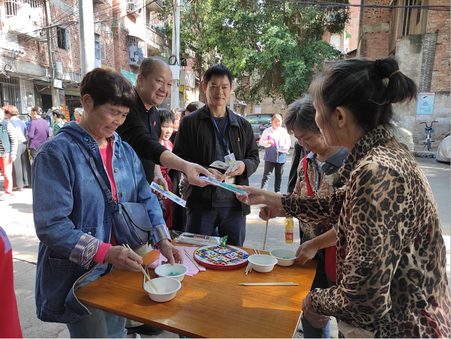 活動現(xiàn)場秋風(fēng)送爽,情暖重陽。2020年10月23日,威寧市場公司商業(yè)事業(yè)部黨總支聯(lián)合永寧社區(qū)黨總支開展“孝老愛親,溫情重陽”主題活動,為社區(qū)退休老同志送上最真摯的節(jié)日祝福。活動現(xiàn)場,來自威寧市場公司和永寧社區(qū)的黨員志愿者們?yōu)樯鐓^(qū)退休老同志們精心準(zhǔn)備了趣味橫生的游園活動。拋圈、接乒乓球、夾玻珠……老少咸宜的小游戲輪番進(jìn)行,現(xiàn)場掌聲、喝彩聲此起彼伏。同時,在游園小游戲中穿插的全國文明城市創(chuàng)建、垃圾分類