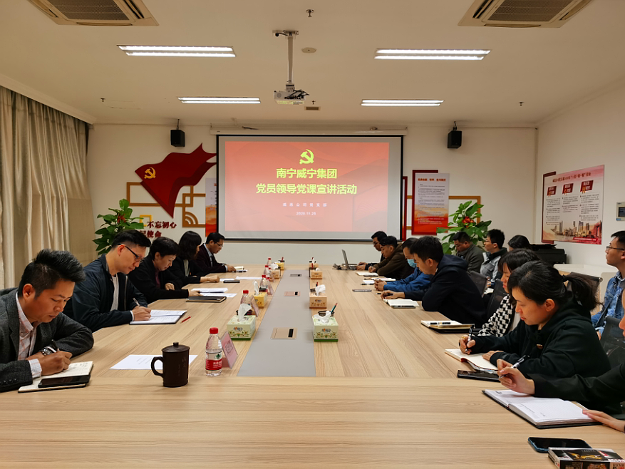 黨課現(xiàn)場(chǎng)集團(tuán)黨委副書(shū)記、總經(jīng)理劉巧瑛同志講話“我們要充分認(rèn)識(shí)“十三五”以來(lái)黨和國(guó)家事業(yè)取得的重大成就,全面把握《建議》部署要求,立足崗位,攻堅(jiān)克難,以更加奮發(fā)有為的姿態(tài)邁向新征程?!?020年11月25日,集團(tuán)黨委副書(shū)記、總經(jīng)理劉巧瑛同志給黨支部工作聯(lián)系點(diǎn)威邕公司黨支部全體黨員上了一堂以貫徹十九屆五中全會(huì)精神、黨風(fēng)廉政教育為主題的生動(dòng)黨課,進(jìn)一步凝聚共識(shí)、匯聚力量,為全面貫徹落實(shí)強(qiáng)首府戰(zhàn)略、沖刺集