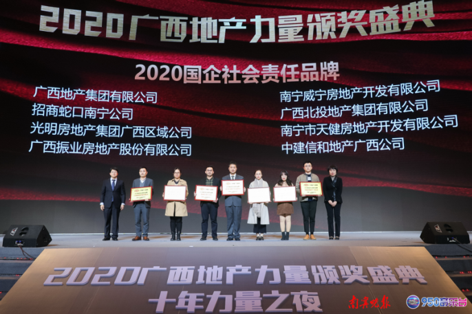 近日,威寧房地產(chǎn)公司在由南寧晚報和廣西廣播電視臺FM950聯(lián)合主辦、南寧市房地產(chǎn)業(yè)協(xié)會協(xié)辦的2020廣西地產(chǎn)力量頒獎盛典上連獲“2020國企社會責(zé)任品牌”、“2020廣西地產(chǎn)匠心代表作(威寧青運(yùn)村)”、“2020廣西商業(yè)綜合體美好城市服務(wù)標(biāo)桿(威寧鄰家廣場)”等多個獎項,收獲了滿滿的榮譽(yù)。