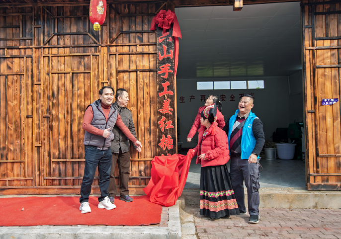 近日,上林縣白圩鎮(zhèn)愛長村集體經(jīng)濟(jì)扶貧產(chǎn)業(yè)示范園的扶貧項目——六山手工姜紅糖坊揭牌儀式在愛長村六山農(nóng)莊舉行,集團(tuán)副總經(jīng)理黎鎮(zhèn)宇,威寧資產(chǎn)公司負(fù)責(zé)人為制糖工坊揭牌。制糖工坊的順利投產(chǎn)進(jìn)一步整合了愛長村的資源優(yōu)勢,將脫貧攻堅工作推向新臺階。