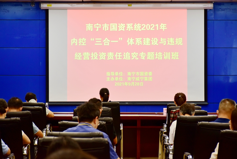 為貫徹黨中央、國(guó)務(wù)院、自治區(qū)黨委、政府及市委市政府關(guān)于防范化解重大風(fēng)險(xiǎn)決策部署,落實(shí)國(guó)企改革三年行動(dòng)要求,加強(qiáng)企業(yè)內(nèi)控體系建設(shè),進(jìn)一步提升防范重大資金損失風(fēng)險(xiǎn)能力,近日,南寧威寧集團(tuán)在廣西體育中心新聞發(fā)布廳舉辦南寧市國(guó)資系統(tǒng)2021年內(nèi)控“三合一”體系建設(shè)與違規(guī)經(jīng)營(yíng)投資責(zé)任追究專題培訓(xùn)班。