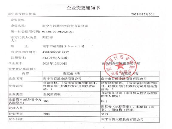 百通業(yè)沃公司改制新公司設(shè)立近日,南寧威寧集團(tuán)通過專項(xiàng)隊(duì)伍組建、改制任務(wù)梳理、難點(diǎn)各個(gè)擊破等“三步走”的方式,成功克服時(shí)間緊任務(wù)重的困難,僅用44天即順利完成南寧市百通業(yè)沃商貿(mào)公司(以下簡稱百通業(yè)沃公司)公司化改革工作,較正常流程提前5個(gè)月左右,不僅在集團(tuán)全民所有制企業(yè)改革工作中再下一城,還為打贏2022年國企改革三年行動(dòng)收官戰(zhàn)奠定了堅(jiān)實(shí)的基礎(chǔ)。全民所有制企業(yè)改革工作是國企改革三年行動(dòng)重點(diǎn)工作之一,