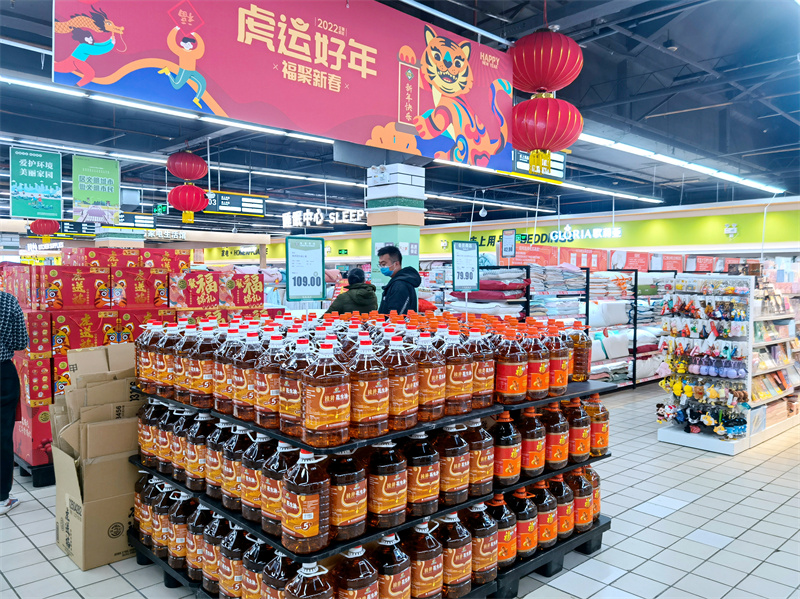 大型商超中的“桂井”糧油產(chǎn)品農(nóng)貿(mào)市場(chǎng)年貨商品豐富農(nóng)貿(mào)市場(chǎng)肉菜商品保供價(jià)穩(wěn)春節(jié)臨近,年味兒漸濃,農(nóng)副產(chǎn)品消費(fèi)市場(chǎng)一片紅火。威寧市場(chǎng)公司積極發(fā)揮國(guó)有農(nóng)產(chǎn)品銷售主渠道作用,全力做好春節(jié)期間市民生活必需品保供工作,守好市民的“菜籃子”“米袋子”。在新陽(yáng)路水街市場(chǎng),新年的喜慶感撲面而來(lái),處處呈現(xiàn)供銷兩旺的喜人景象,臘肉、羊蹄、大閹雞……各攤位前人頭攢動(dòng),比往日更加熱鬧。運(yùn)送果菜的車輛進(jìn)出不斷,生猛海鮮和魚蝦