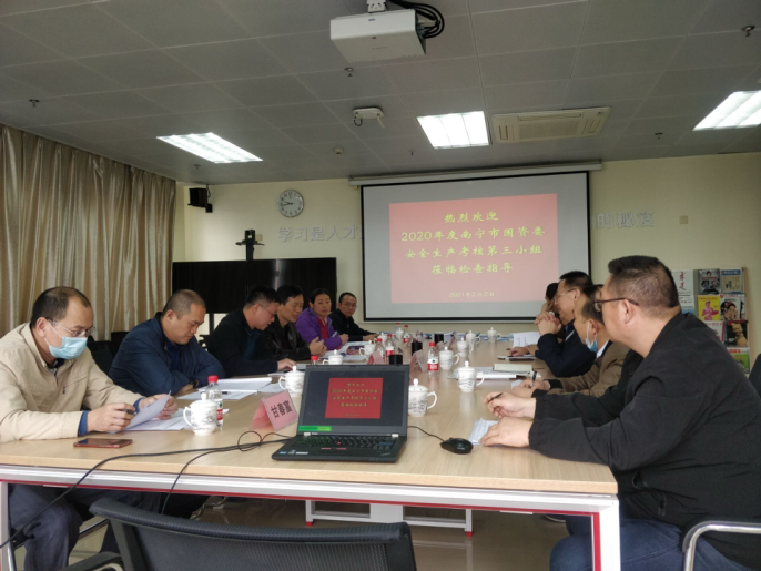 2021年2月2日,南寧市國資委安全生產(chǎn)工作考核組一行六人,到集團考核 2020 年安全生產(chǎn)目標任務(wù)完成情況。