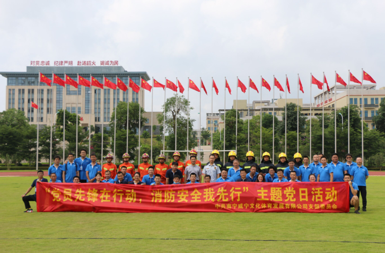 為進一步提升黨員干部的消防安全意識,掌握消防基本知識和技能,發(fā)揮黨員先鋒模范帶頭作用,預(yù)防消防安全事故,2020年7月3日上午,威寧文體公司黨支部圍繞“黨員先鋒在行動,消防安全我先行”主題,在廣西(南寧)消防培訓(xùn)基地開展主題黨日活動。黨支部全體黨員、發(fā)展對象、積極分子和職工群眾共40人參加了活動。