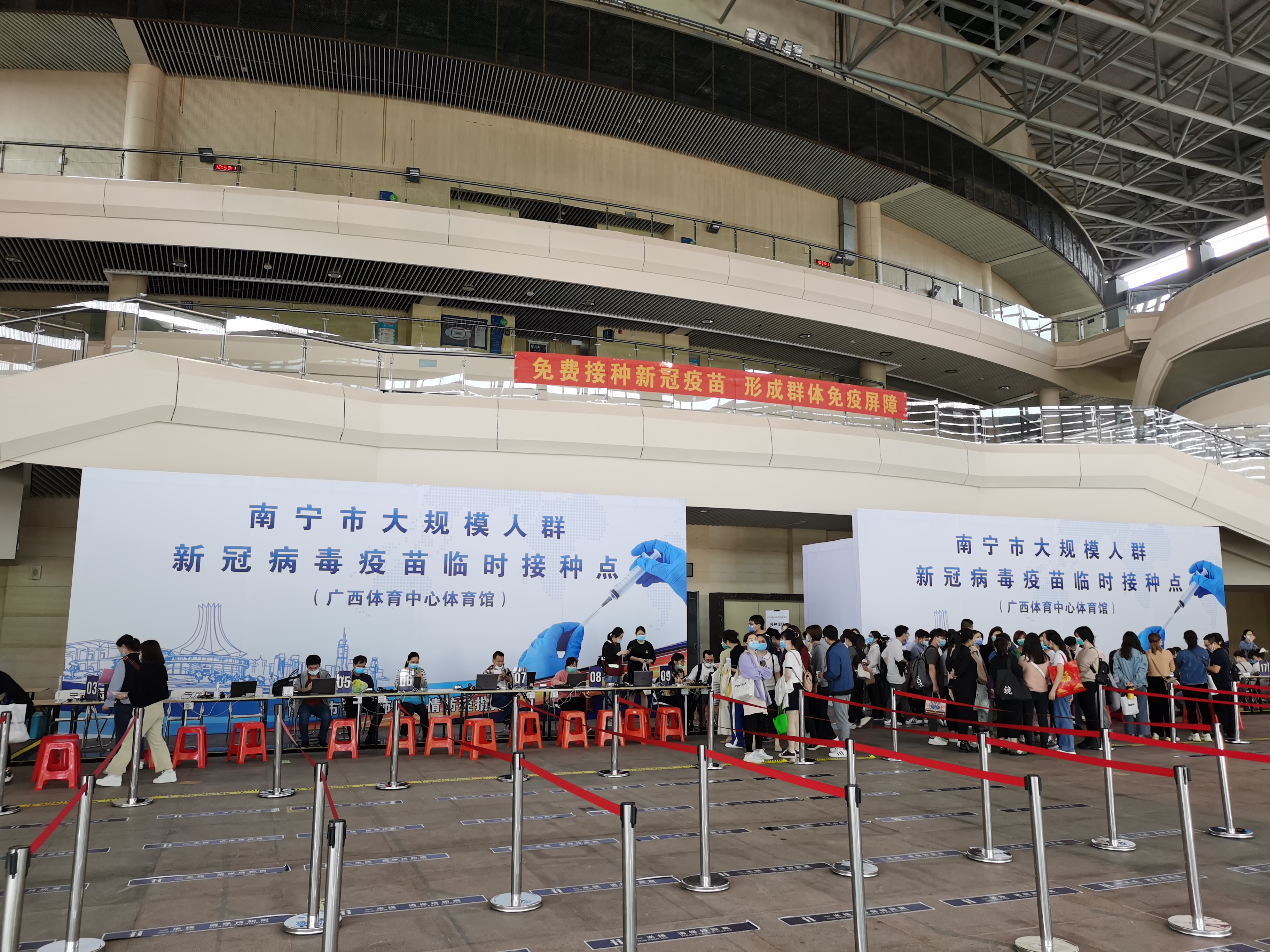 市民有序排隊等待接種疫苗疫苗接種現(xiàn)場規(guī)范整潔威寧文體公司領(lǐng)導(dǎo)檢查現(xiàn)場威寧文體公司工作人員搬運物資“別著急,我來幫您填寫信息,您跟我說就可以?!薄罢埓蠹页鍪窘】荡a,按秩序排隊入場?!?021年3月29日,南寧市新冠病毒疫苗大型臨時接種點—廣西體育中心體育館正式對外接待接種疫苗人員,日均接種新冠病毒疫苗能力達5000劑次以上。在廣西體育中心體育館入口,工作人員耐心向新冠疫苗接種人員講解如何登記信息,遇