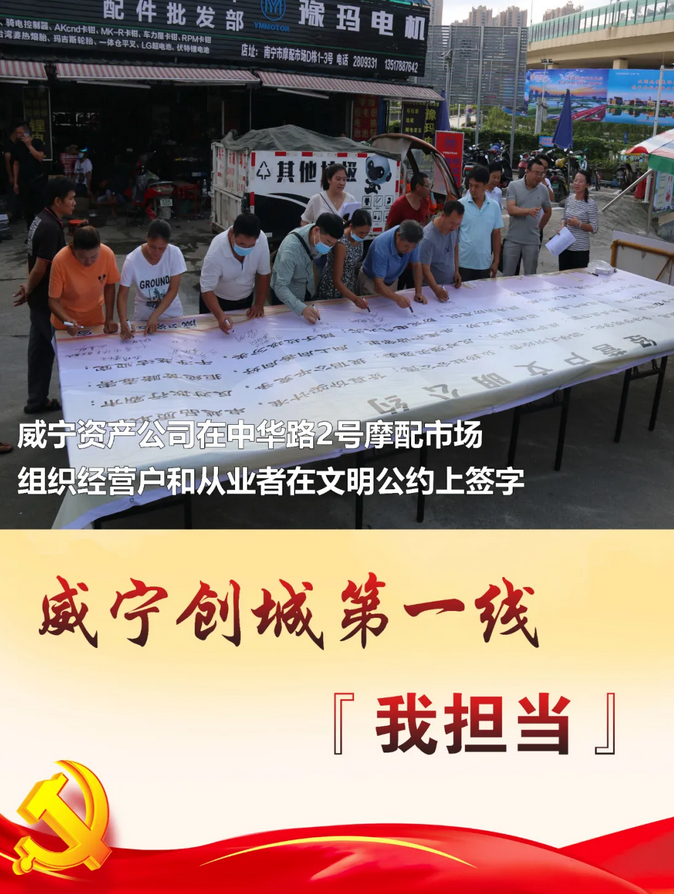 美麗南寧 共建共享 南寧威寧集團(tuán)監(jiān)管單位 威寧資產(chǎn)公司全體黨員職工在所轄的專業(yè)市場(chǎng)、沿街商鋪、老舊小區(qū)等一線,搶前抓早,落實(shí)落細(xì)各項(xiàng)工作,為南寧市創(chuàng)建全國(guó)文明城市奉獻(xiàn)一份力量!