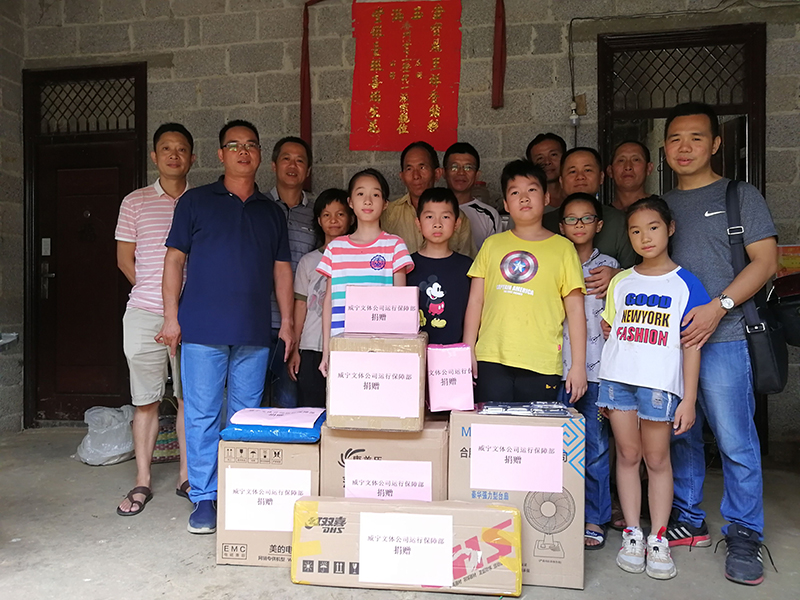 2018年6月17日,威寧文體公司部分員工自發(fā)組成愛心小分隊(duì)到武鳴區(qū)仙湖鎮(zhèn)六冬村特困戶潘漢設(shè)家開展“送溫暖”活動(dòng)。大力發(fā)揚(yáng)了南寧“能幫就幫”傳統(tǒng)精神,營(yíng)造良好的脫貧攻堅(jiān)大扶貧、大合力和大成效格局氛圍。