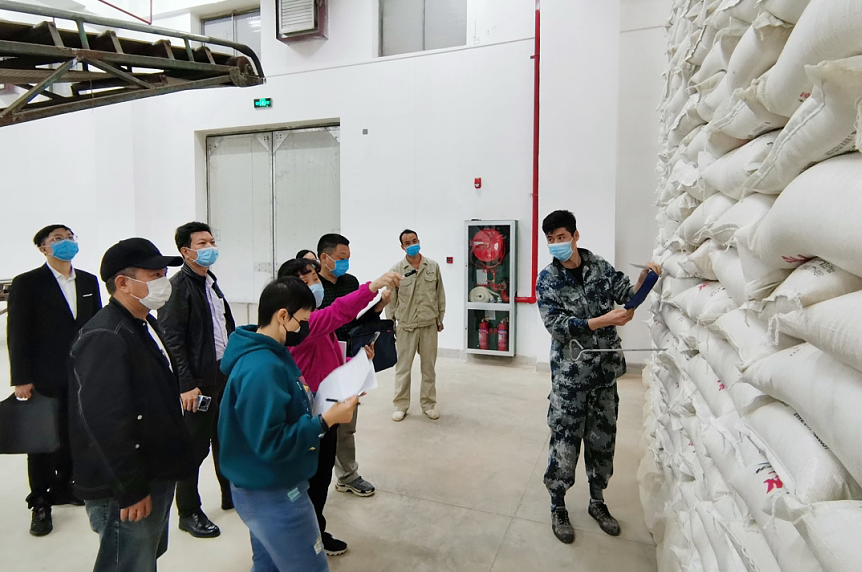 2020年4月10日,自治區(qū)糧食和物資儲(chǔ)備局執(zhí)法督查處處長(zhǎng)唐雙貴帶隊(duì)到儲(chǔ)備糧公司,開展應(yīng)急成品糧庫存專項(xiàng)檢查,確保在特殊情況下,成品糧應(yīng)急儲(chǔ)備能夠“拉的出,供的上”。