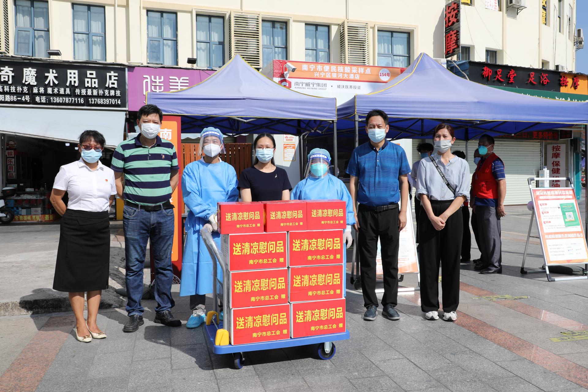 8月15日下午,南寧市總工會(huì)副主席馮曉華帶領(lǐng)慰問(wèn)組到威沃醫(yī)養(yǎng)公司便民核酸采樣點(diǎn)開(kāi)展“炎炎夏日送清涼”慰問(wèn)活動(dòng),為在高溫天氣下堅(jiān)守崗位的便民核酸采樣點(diǎn)工作人員送去一份夏日的清涼。集團(tuán)黨委副書(shū)記、工會(huì)主席馬超毅參加慰問(wèn)活動(dòng)。慰問(wèn)中,馮曉華詳細(xì)了解便民核酸采樣點(diǎn)工作、人員配備、工作時(shí)長(zhǎng)和輪崗等相關(guān)情況,向奮戰(zhàn)在高溫酷暑下的一線工作...